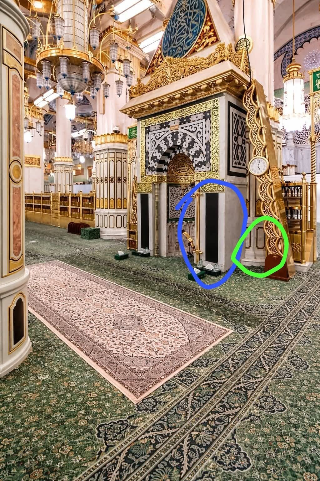 Mavi daire içindeki o makam, Peygamber Efendimiz sallallahu aleyhi ve âlihi ve sellem’in imamlık yaptığı yerdir. Türkler çok âşık ve edep sahibi kimselerdir; bu yüzden o mübarek makamı mihrabın içine almışlardır ki, bu pâk ve muhterem toprak üzerine kimsenin ayağı değmesin ve…Daha Fazla Oku